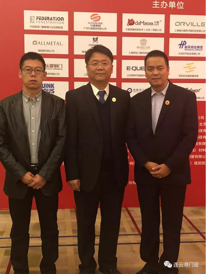 連云港市門(mén)窗協(xié)會(huì)會(huì)長(zhǎng)潘國(guó)柱(右一)、連云港市門(mén)窗協(xié)會(huì)專家顧問(wèn)亓彥濤(左一)與主辦方“中視藍(lán)海門(mén)窗幕墻行業(yè)發(fā)展聯(lián)盟”秘書(shū)長(zhǎng)程學(xué)軍先生合影留念。